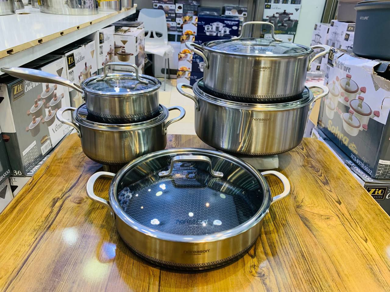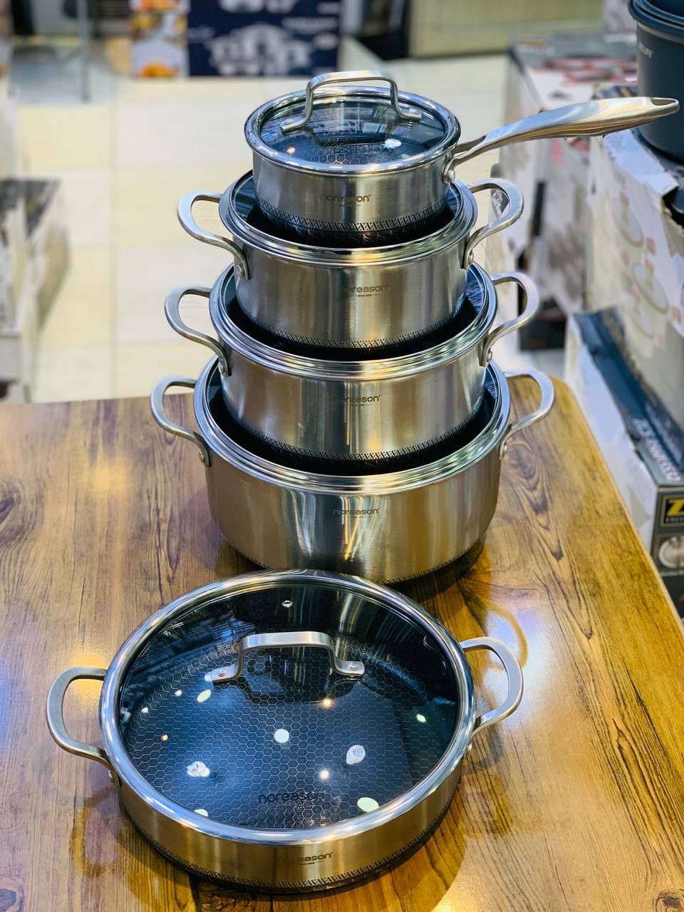 سرویس قابلمه استیل کف لیزری مارک نوریسان المانی، دارای ویژگی هایی است که به اختصار به آن اشاره می کنیم :