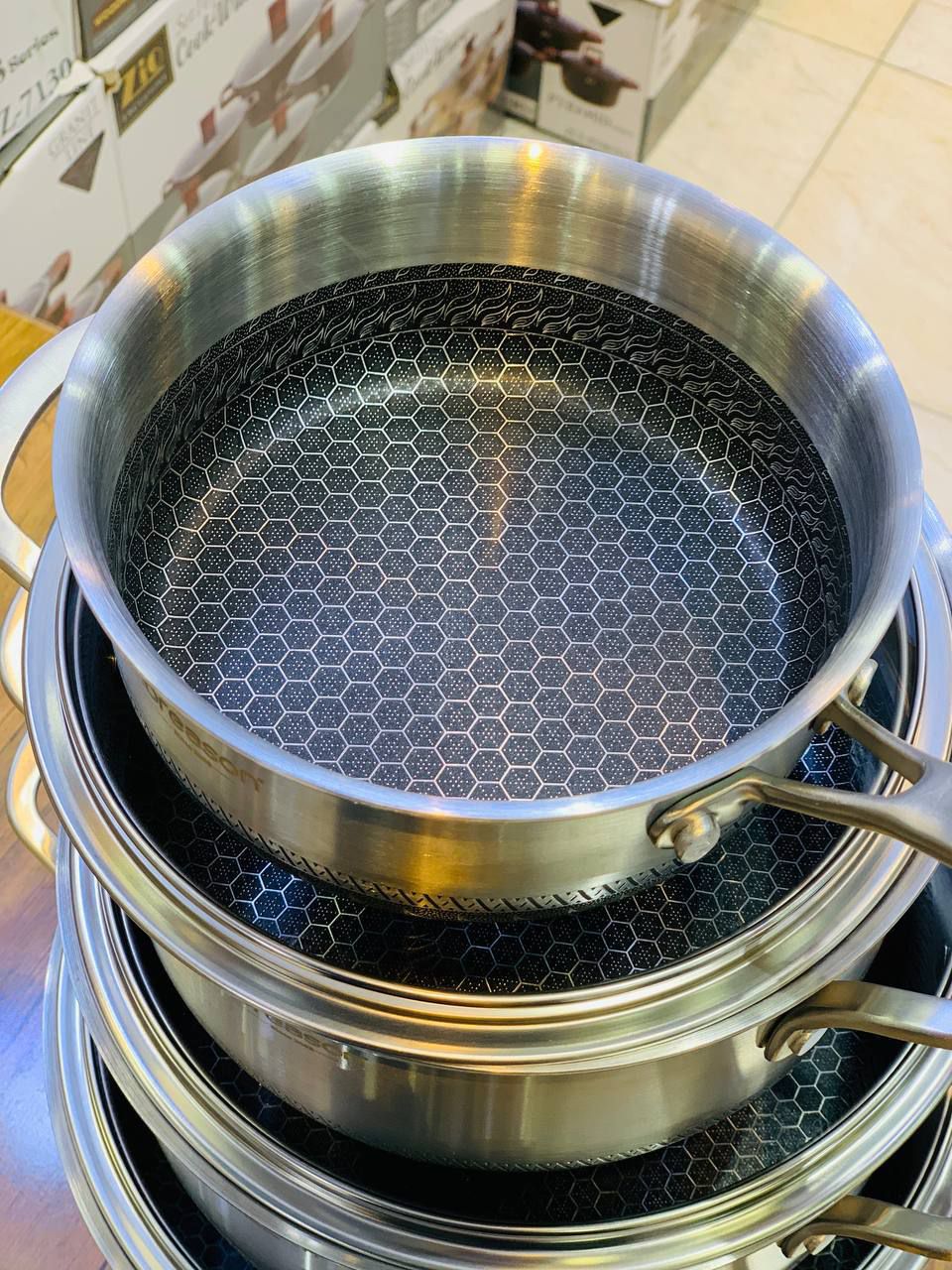 کف لیزری و کاملاً نچسب این قابلمهها موجب پخش یکنواخت حرارت شده و از چسبیدن غذا جلوگیری میکند؛ در نتیجه پخت غذا سالمتر انجام میشود و شستوشوی ظروف نیز بسیار آسان خواهد بود. این ویژگی بهویژه برای پخت غذاهای کمروغن و رژیمی اهمیت زیادی دارد.