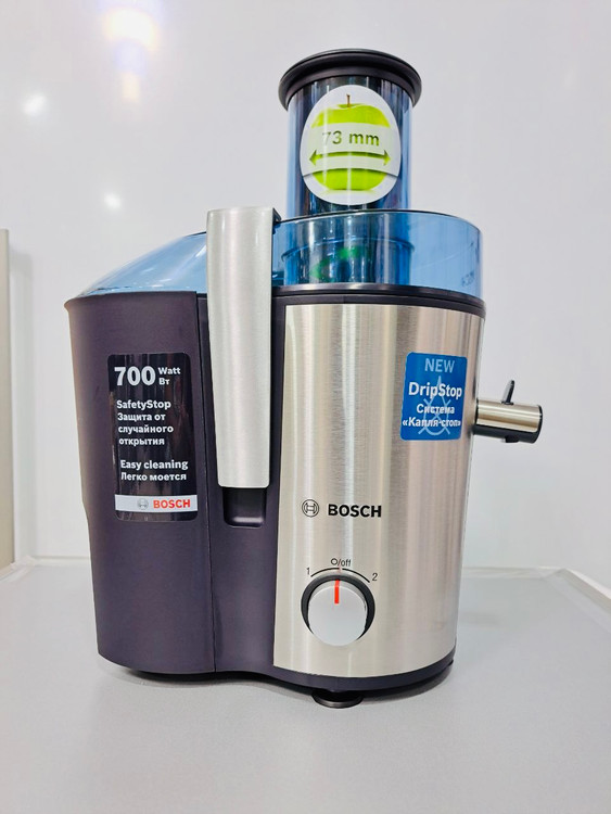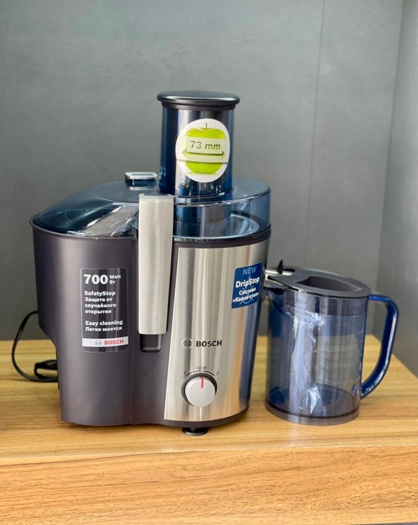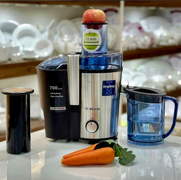 آبمیوه_گیری بوش مدل MES3500 یکی از محصولات پرطرفدار شرکت بوش در بازارهای جهانی است آبمیوهگیری در کنار طراحی زیبا و کیفیت بالایی که دارد دارای دو مخزن جداگانه برای آبمیوه و تفاله میوه میباشد. از جمله مزایای این دو مقصد میتوان به پاکسازی آسان آن اشاره کرد ه اصلی این دستگاه از استیل ضد زنگ میباشد و دهانه آن نیز از قطر بسیار مناسبی برخوردار است که میتوانید انواع میوه و سبزیجات را آبگیری نمایید از اقلام همراه این محصول میتوان به پارچه ه که دارای درجهبندی مخصوص میباشد اشاره کرد البته لازم است اشاره کنم که جنس این پارس پلاستیکی و شفاف است تمامی لوازم جانبی این دستگاه قابلیت شستشو در ماشین ظرفشویی را داراست.