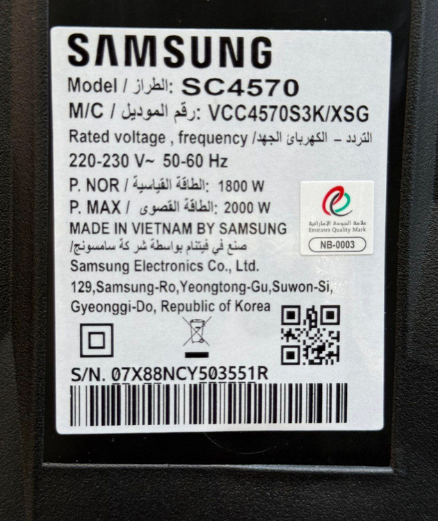 ویژگی هی جاروبرقی مخزندار سامسونگ مدل SC4570 :