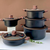 جنس بدنه قابلمهها از آلومینیوم فشرده با ضخامت بالا بوده که ضمن توزیع یکنواخت حرارت، به حفظ دمای مناسب غذا کمک میکند. پوشش داخلی این قابلمهها از گرانیت نچسب و باکیفیت ساخته شده که بدون نیاز به روغن زیاد، امکان پختوپز سالمتری را فراهم مینماید. این پوشش در برابر خراش، سوختگی و شستوشوی مداوم مقاوم بوده و طول عمر بالایی دارد.